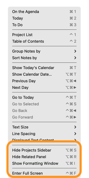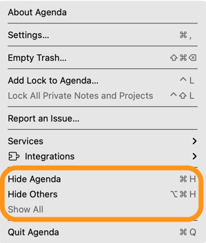 That won’t help you with distractions, but you can hide both sidebars. In Agenda under the “View” menu: