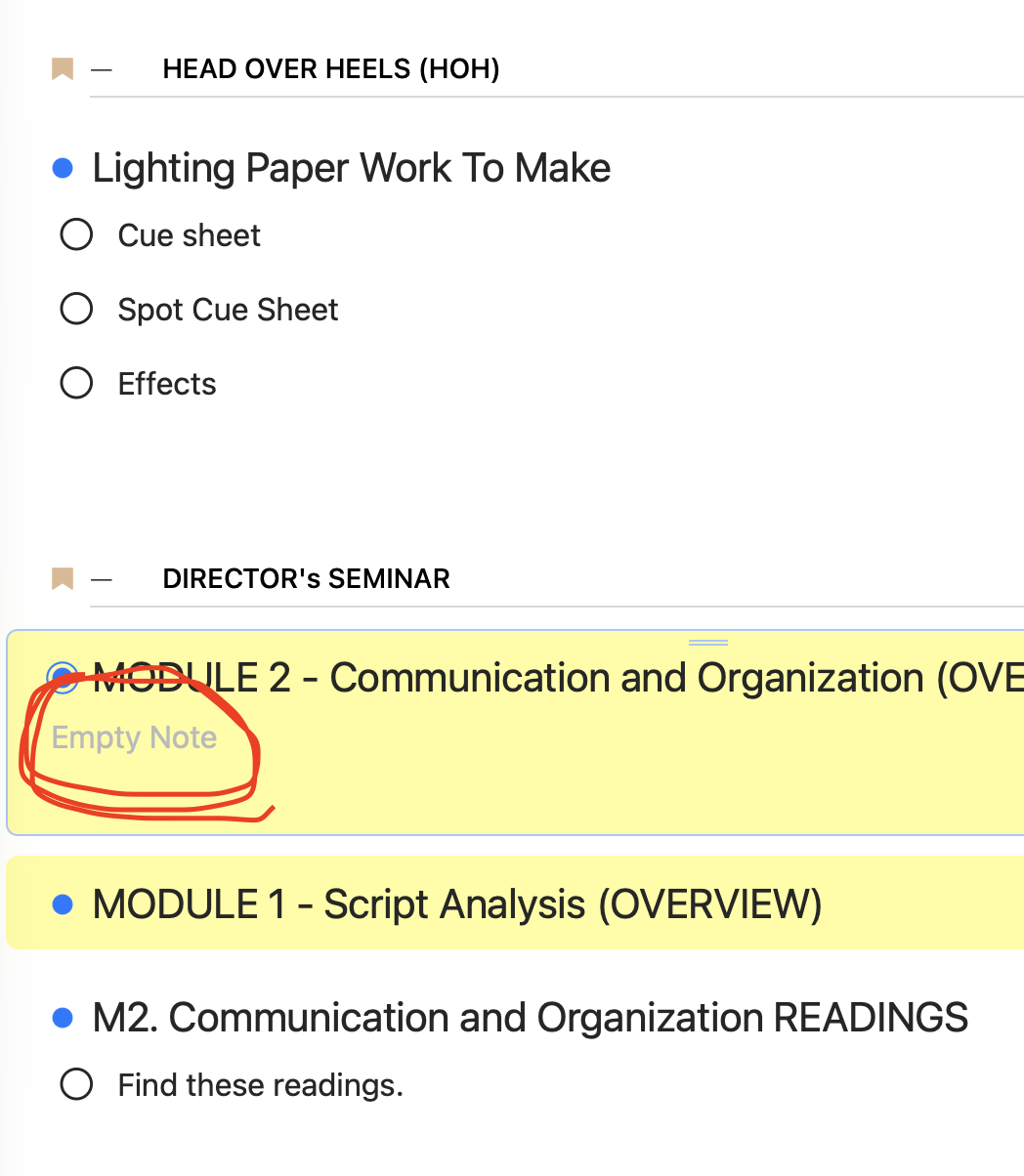 How I feel: This is confusing, becuase these notes are not in fact empty, they are full of text, just no unchecked tasks. This can cause a feeling of my information being lost when I see “empty note” and have forgotten that a filter is on.