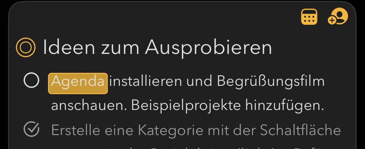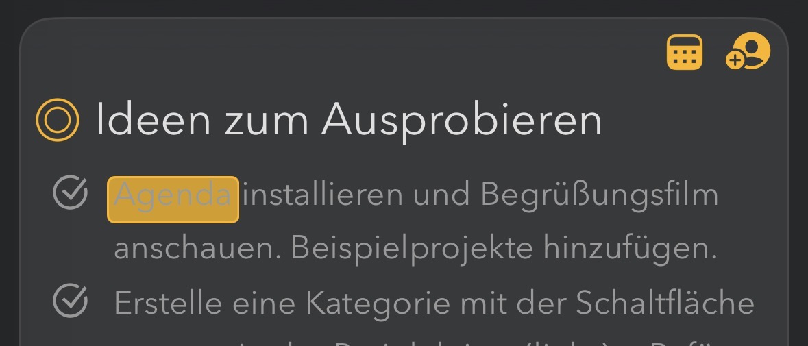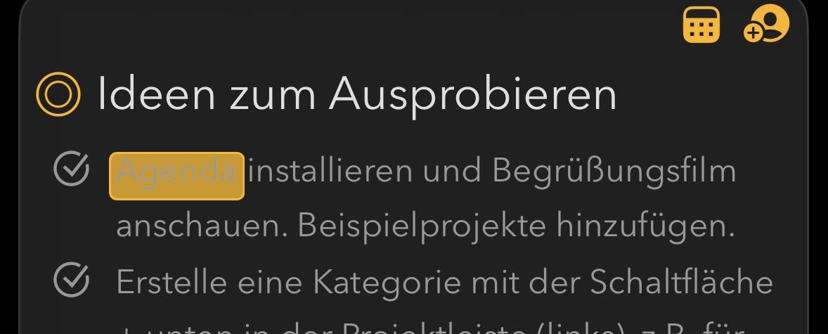 Black user interface: Readability is excellent for checklist items that have not yet been checked off.