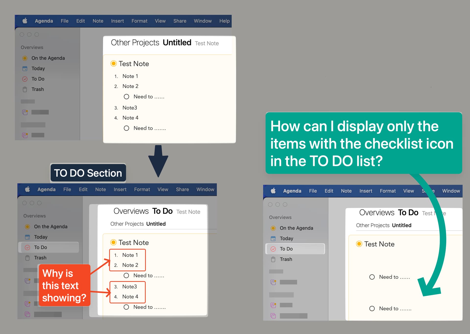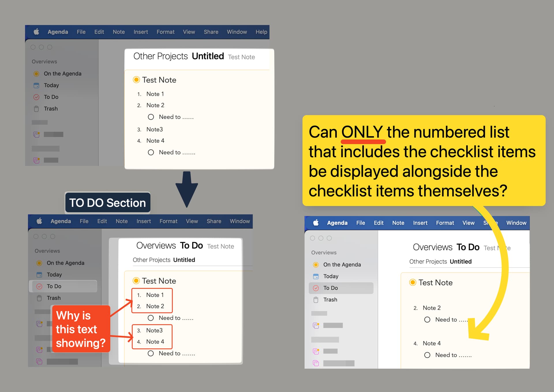 I assume you just want to see the “parent” item where the checklist is embedded. We’ll think about whether we could support that in future.