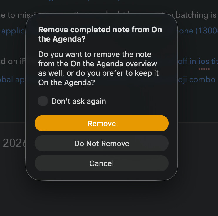What happened: Marked it as done, automatically removed from agenda.