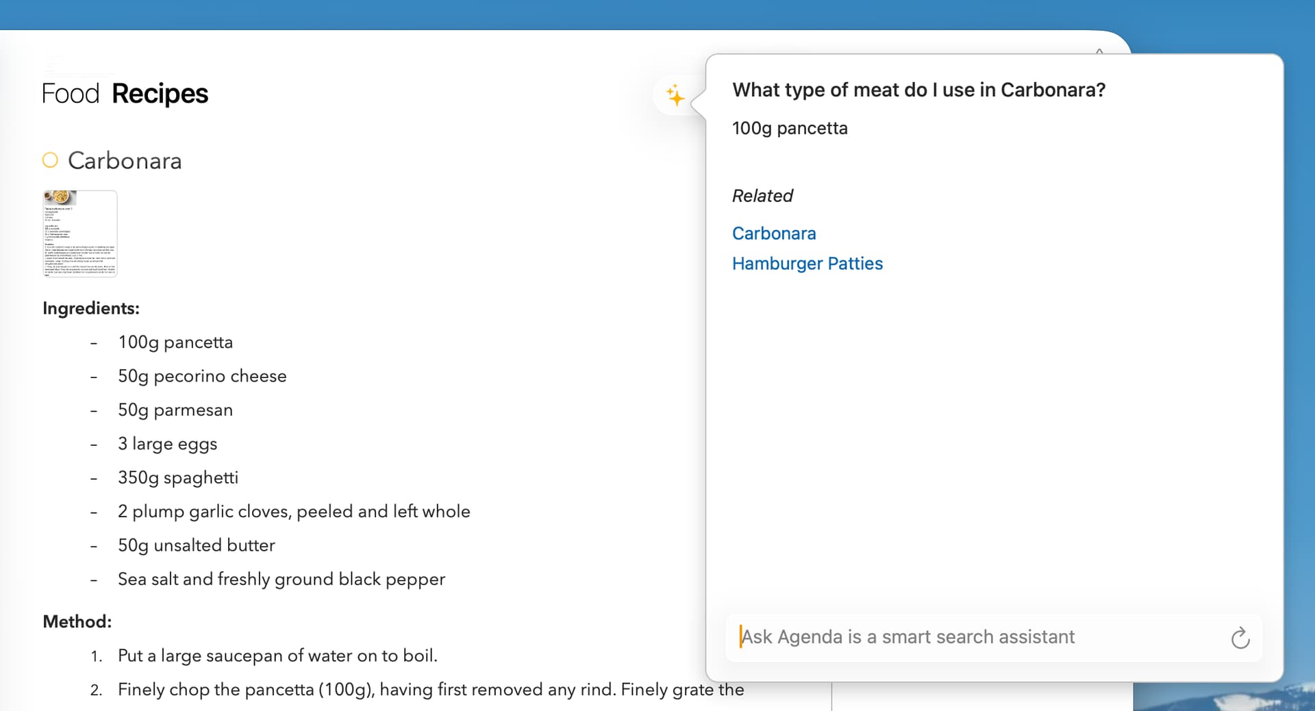 - Pose questions about your notes to Ask Agenda in everyday language