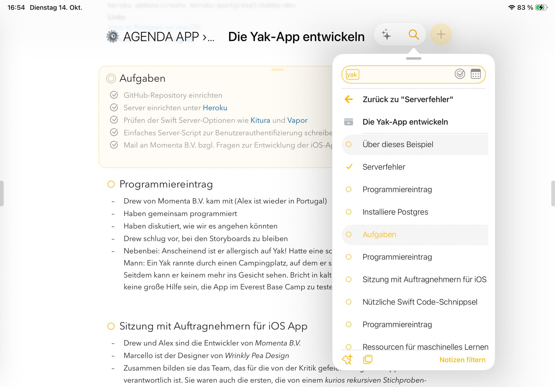 Furthermore, there is the problem with incorrect search results, which is now causing me a lot of frustration. Searching for “yak” leads to incorrect notes. It’s a frequent struggle.