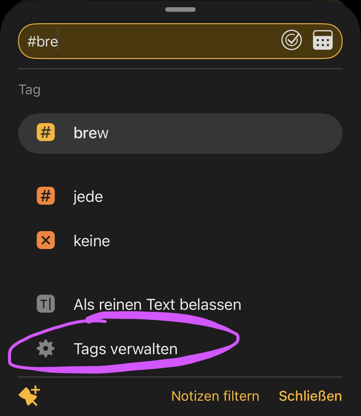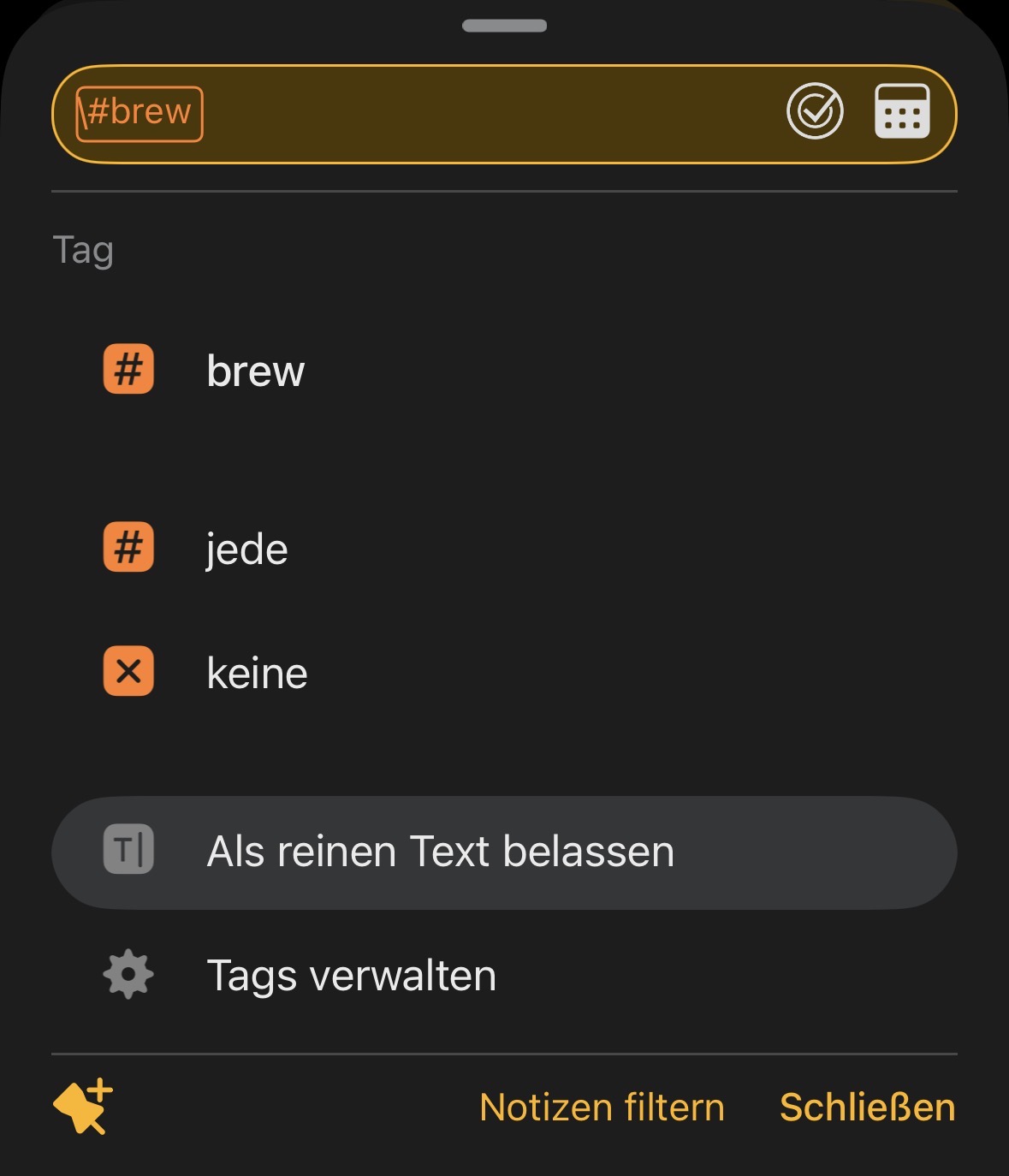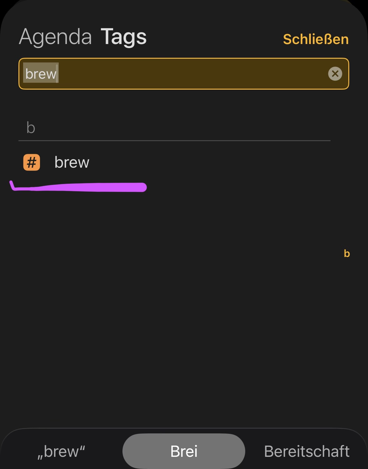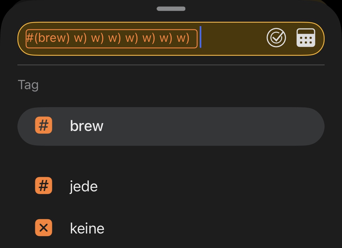 And after typing #brew, this happened too. I have no idea where it came from, but the search field seems to be translating into German. I was able to reproduce it, and I’m sure I didn’t type anything else.