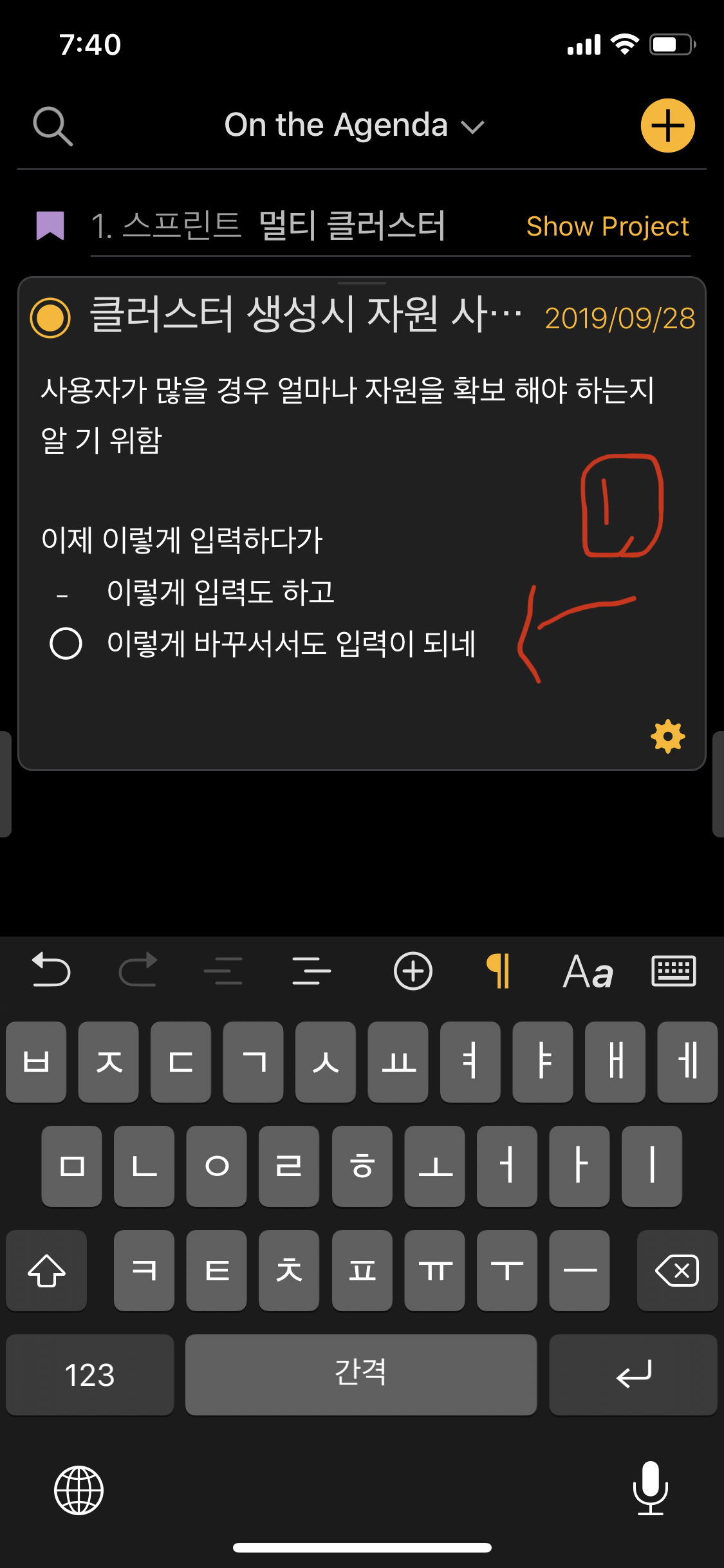 Input Korean language in list and @person tag.